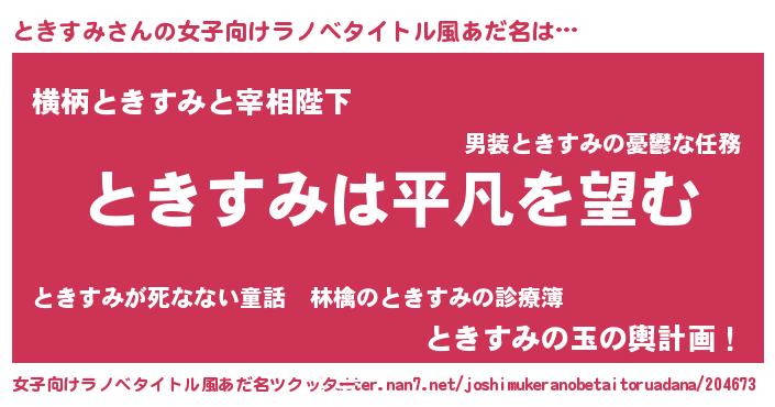 | ポケモン風あだ名 | 『ヒトキスミ』『トキゴンZ』 |