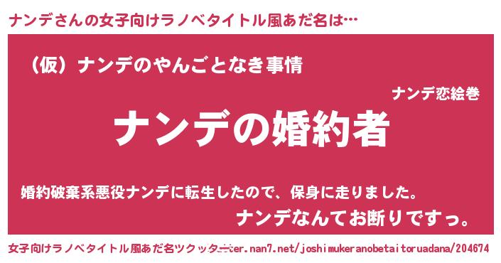 | ファンタジー風あだ名 | 『エターナルナンデー』『ナンフェル』 |