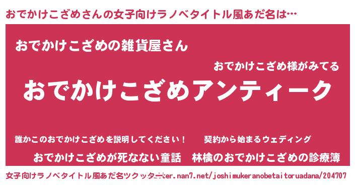 | 男性向けラノベタイトル風あだ名 | 『魔法科高校のおでかけこざめ』 |