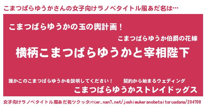| ヒーロー風カッコイイあだ名 | 『最強戦士コマツバラユウカ』 |