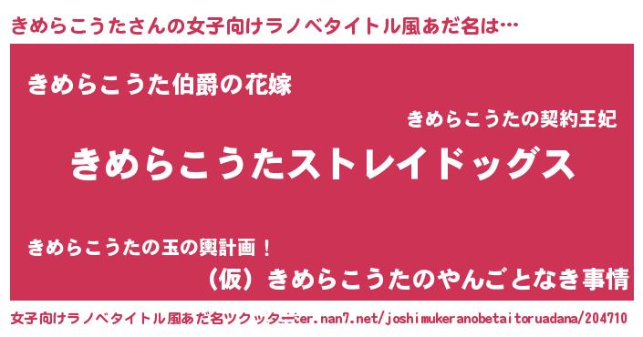 | 男性向けラノベタイトル風あだ名 | 『Re:きめらこうたから始める異世界生活』 |