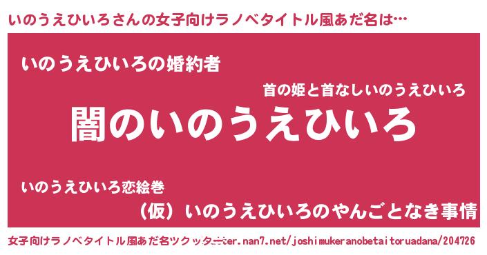 | 男性向けラノベタイトル風あだ名 | 『Re:いのうえひいろから始める異世界生活』 |