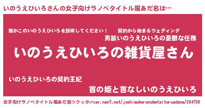 | 男性向けラノベタイトル風あだ名 | 『やはりいのうえひいろの青春ラブコメはまちがっている 』 |