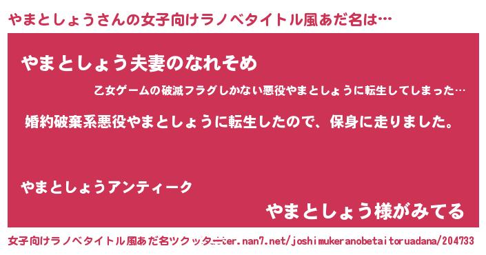 | 男性向けラノベタイトル風あだ名 | 『ヤマトショウスレイヤー』 |