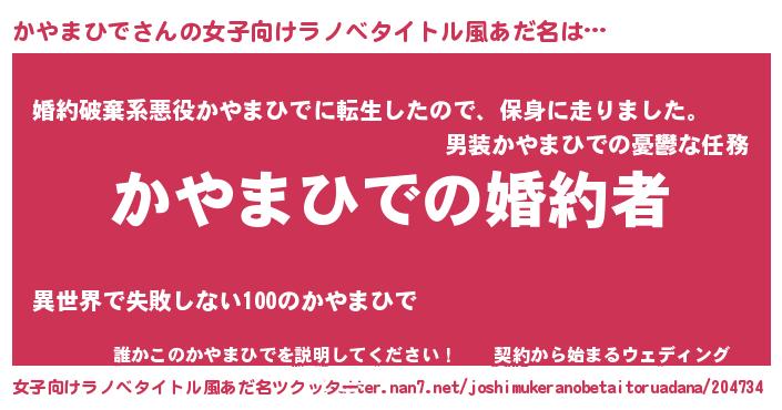 | 男性向けラノベタイトル風あだ名 | 『うちの娘の為ならば、俺はもしかしたらかやまひでも倒せるかもしれない。』 |