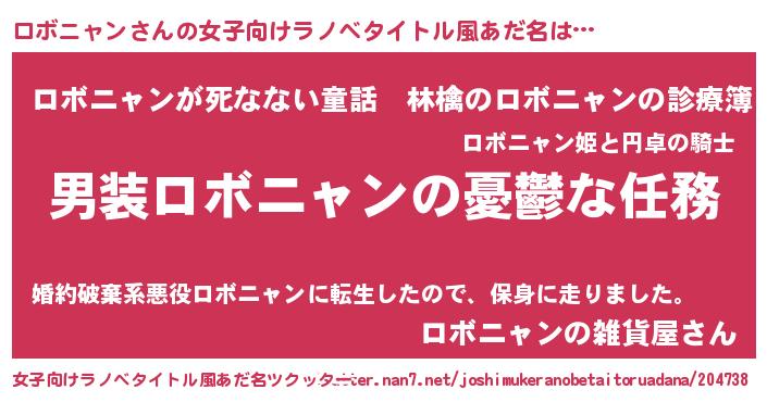 | 胡散臭い通販商品みたいなあだ名 | 『あなたにだけ特別に提供する世界で10本だけ現存している希少なブランデー…その名も「ロボニャン」』 |