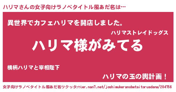 | 可愛いあだ名 | 『ハっリぃー』『ハリマママ』 |