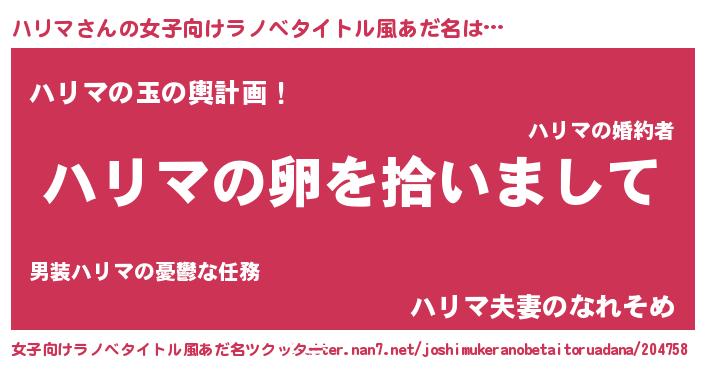 | 男性向けラノベタイトル風あだ名 | 『ハリマの嫁は女の子じゃないと思った?』 |