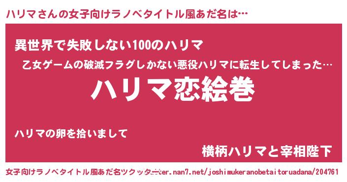 | 男性向けラノベタイトル風あだ名 | 『ノーゲーム・ノーハリマ』 |
