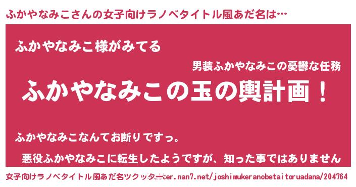 | ヘコむあだ名 | 『ふかお』『ふかやなみこ(遠い目)』 |