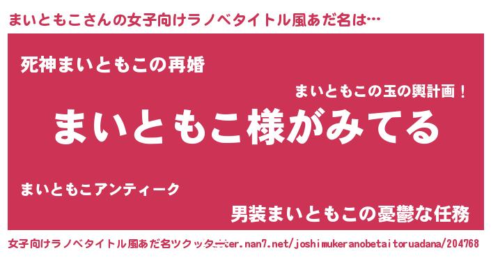 | 男性向けラノベタイトル風あだ名 | 『まいともこの嫁は女の子じゃないと思った?』 |