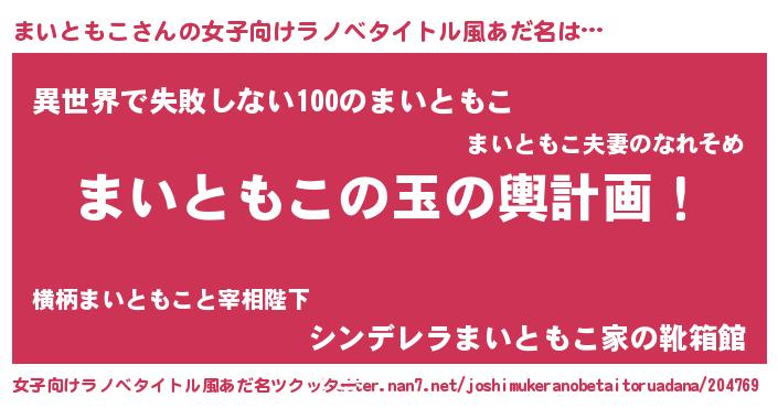 | 胡散臭い通販商品みたいなあだ名 | 『来世でも幸せになれる健康食品…その名も「まいともこ」』 |