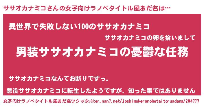 | 男性向けラノベタイトル風あだ名 | 『うちのササオカナミコが世界を掌握している!』 |