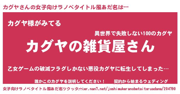 | 男性向けラノベタイトル風あだ名 | 『やはりカグヤの青春ラブコメはまちがっている 』 |