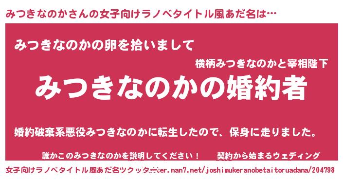 | 男性向けラノベタイトル風あだ名 | 『うちの娘の為ならば、俺はもしかしたらみつきなのかも倒せるかもしれない。』 |