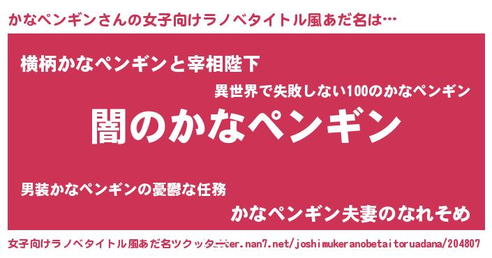 | 意味不明あだ名 | 『自称かなペンギン』 |