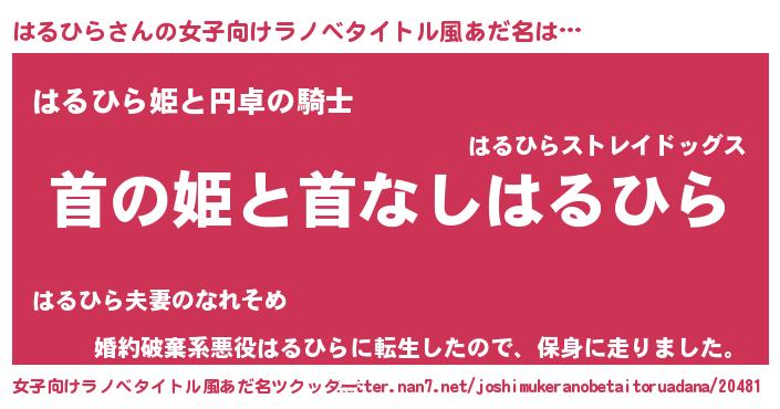 | 胡散臭い通販商品みたいなあだ名 | 『モテモテ間違いなし霊験あらたかなお札…その名も「はるひら」』 |