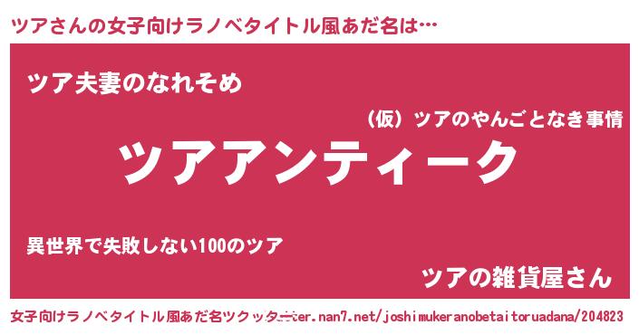 | 男性向けラノベタイトル風あだ名 | 『魔法科高校のツア』『ツアの憂鬱』 |