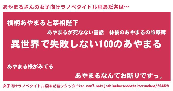 | 胡散臭い通販商品みたいなあだ名 | 『絶対に幸福をもたらす水素水…その名も「あやまる」』 |