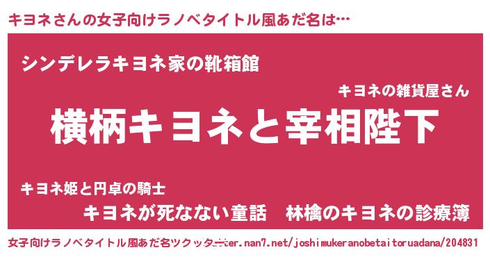 | 胡散臭い通販商品みたいなあだ名 | 『あなたにだけ特別に提供する100年もののヴィンテージワイン…その名も「キヨネ」』 |