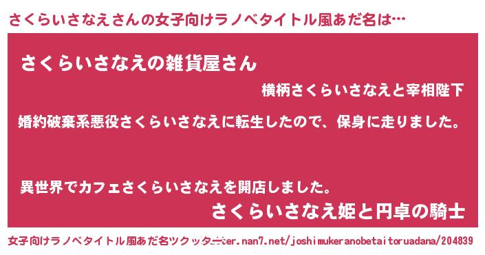 | 男性向けラノベタイトル風あだ名 | 『サクライサナエスレイヤー』 |