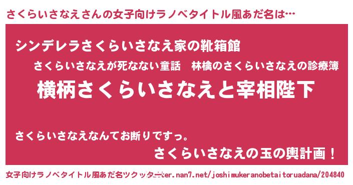 | 男性向けラノベタイトル風あだ名 | 『さくらいさなえに滅ぼされるだけの簡単なお仕事です』 |