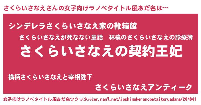| 胡散臭い通販商品みたいなあだ名 | 『来世でも幸せになれる水素水…その名も「さくらいさなえ」』 |