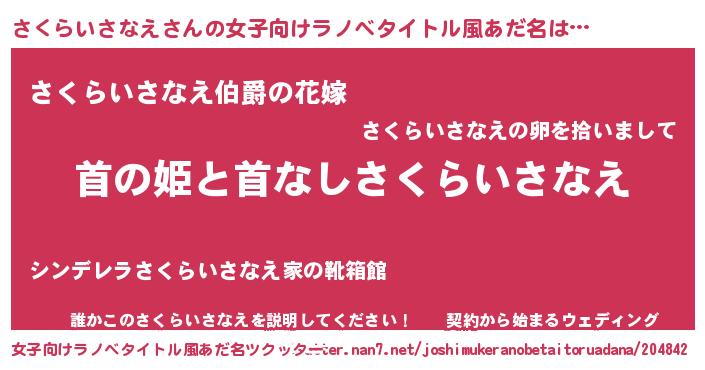 | 意味不明あだ名 | 『さくらいさなえフォーエバー』 |
