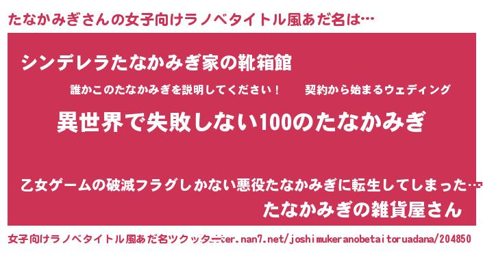 | 男性向けラノベタイトル風あだ名 | 『たなかみぎという概念が存在しない退屈な世界 』 |
