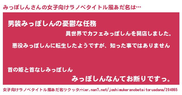 | 男性向けラノベタイトル風あだ名 | 『この素晴らしい世界にみっぽしんを!』 |