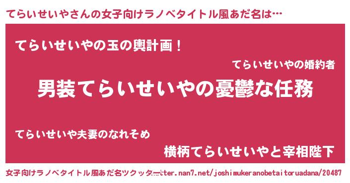 | 男性向けラノベタイトル風あだ名 | 『冴えないてらいせいやの育てかた』 |