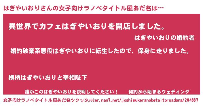 | ヘコむあだ名 | 『はぎやいおり(笑)』『はぎっふぃ~』 |