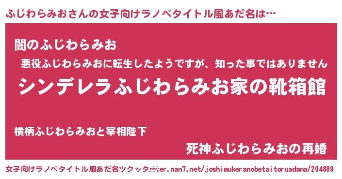 | ヘコむあだ名 | 『ふじわらみお(笑)』『ふじにゅー』 |