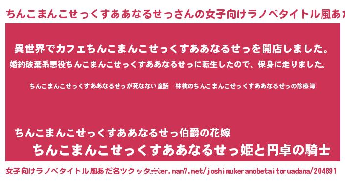 | 男性向けラノベタイトル風あだ名 | 『魔弾の王とちんこまんこせっくすああなるせっ』 |