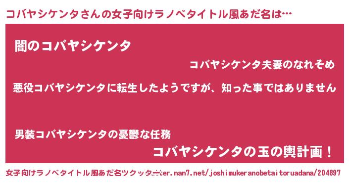 | 男性向けラノベタイトル風あだ名 | 『この素晴らしい世界にコバヤシケンタを!』 |