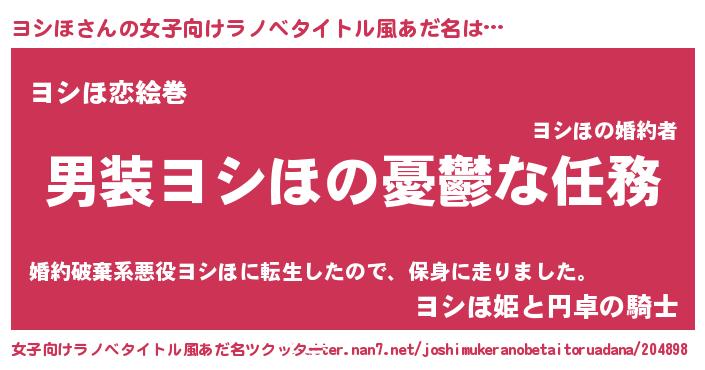 | 伝説のあだ名 | 『救世主となる錬金術士ヨシほ』 |