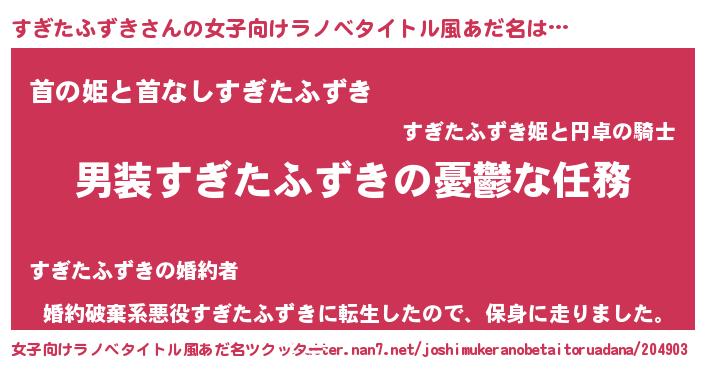 | 男性向けラノベタイトル風あだ名 | 『冴えないすぎたふずきの育てかた』 |