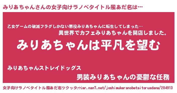 | 料理風あだ名 | 『みりあちゃんの豆乳スープ』 |