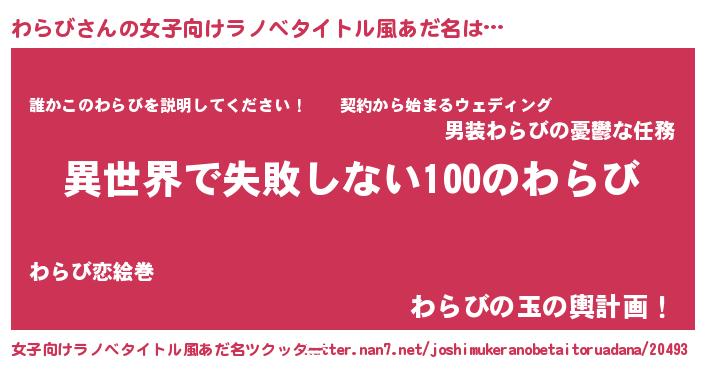 | 男性向けラノベタイトル風あだ名 | 『わらびという概念が存在しない退屈な世界 』 |