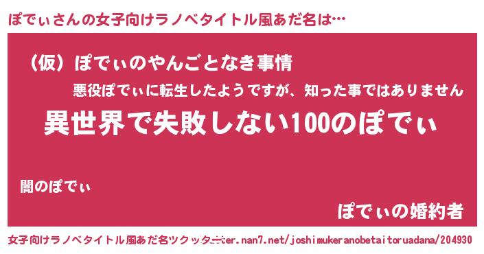| 男性向けラノベタイトル風あだ名 | 『ぽでぃという概念が存在しない退屈な世界 』 |