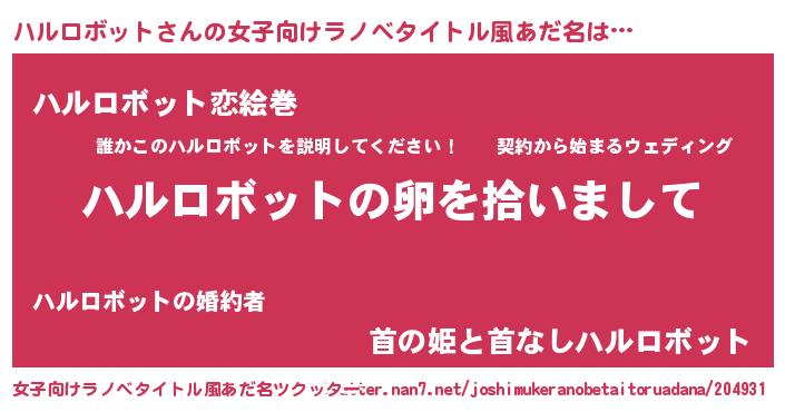 | 萌えアニメ | 主人公(ハルロボット)のあだ名『 ハル様』 |
