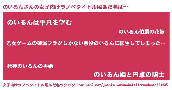 | 男性向けラノベタイトル風あだ名 | 『この素晴らしい世界にのいるんを!』 |