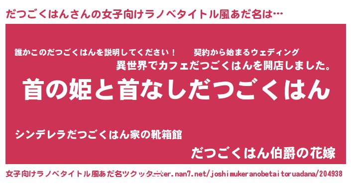 | 男性向けラノベタイトル風あだ名 | 『はたらくだつごくはんさま!』 |