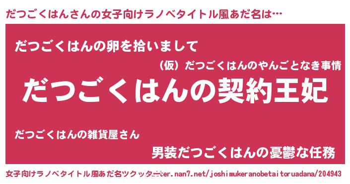 | 胡散臭い通販商品みたいなあだ名 | 『来世でも幸せになれる健康食品…その名も「だつごくはん」』 |