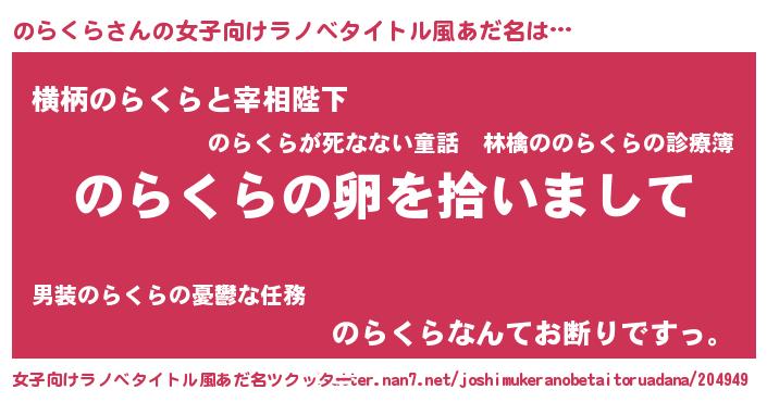 | 男性向けラノベタイトル風あだ名 | 『のらくらの嫁は女の子じゃないと思った?』 |