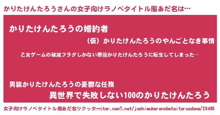 | 意味不明あだ名 | 『住所不定無職かりたけんたろう(95歳)』 |