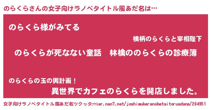 | ヘコむあだ名 | 『のらっちょ』『のらくら(爆)』 |