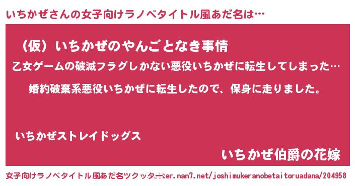 | 男性向けラノベタイトル風あだ名 | 『イチカゼスレイヤー』『いちかぜの憂鬱』 |
