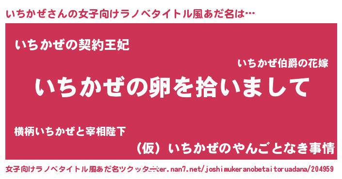 | 男性向けラノベタイトル風あだ名 | 『いちかぜの嫁は女の子じゃないと思った?』 |