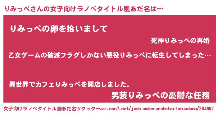 | 胡散臭い通販商品みたいなあだ名 | 『世界中を虜にした世界で10本だけ現存している希少なブランデー…その名も「りみっぺ」』 |